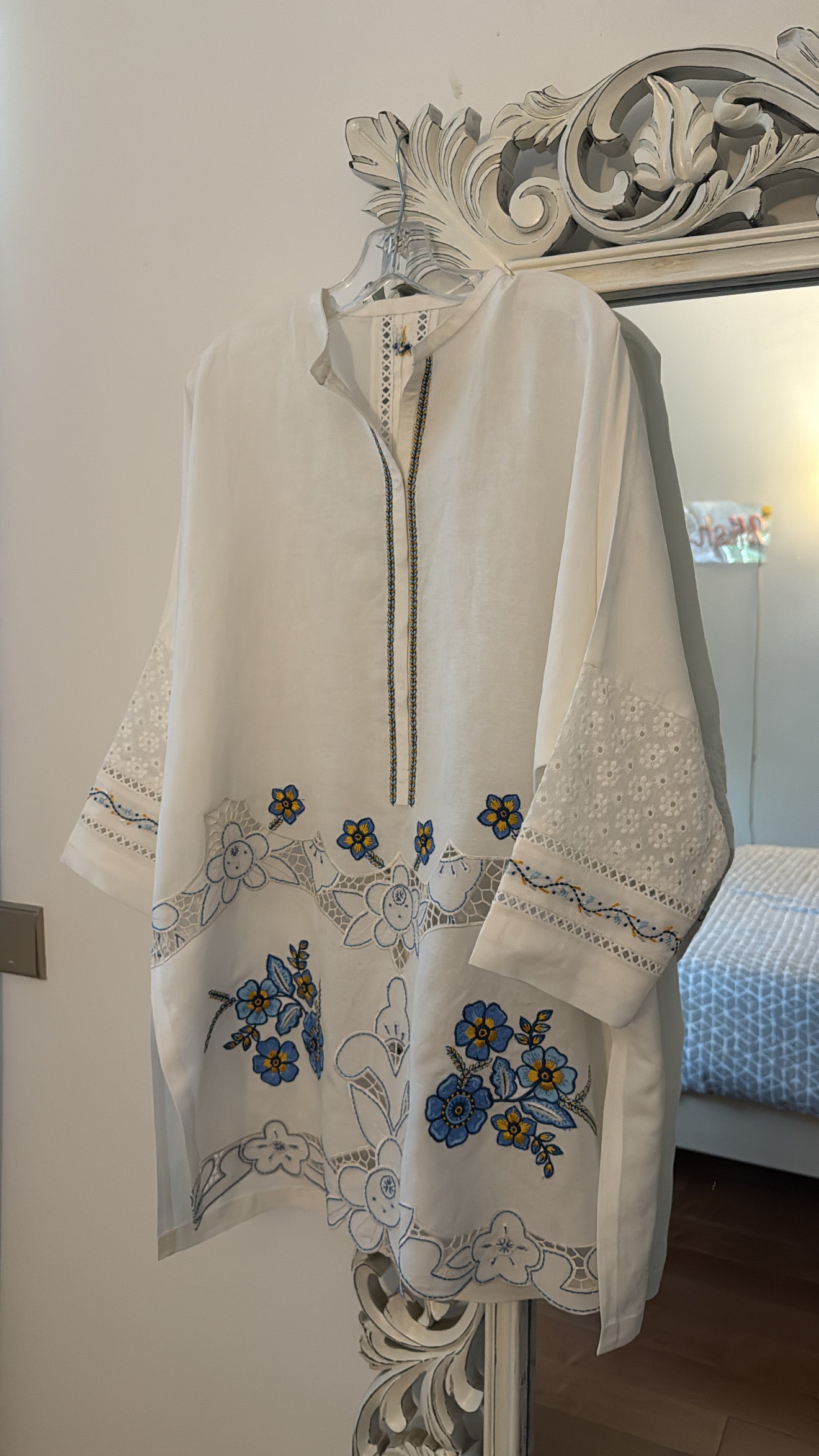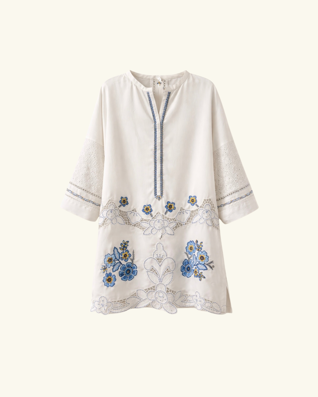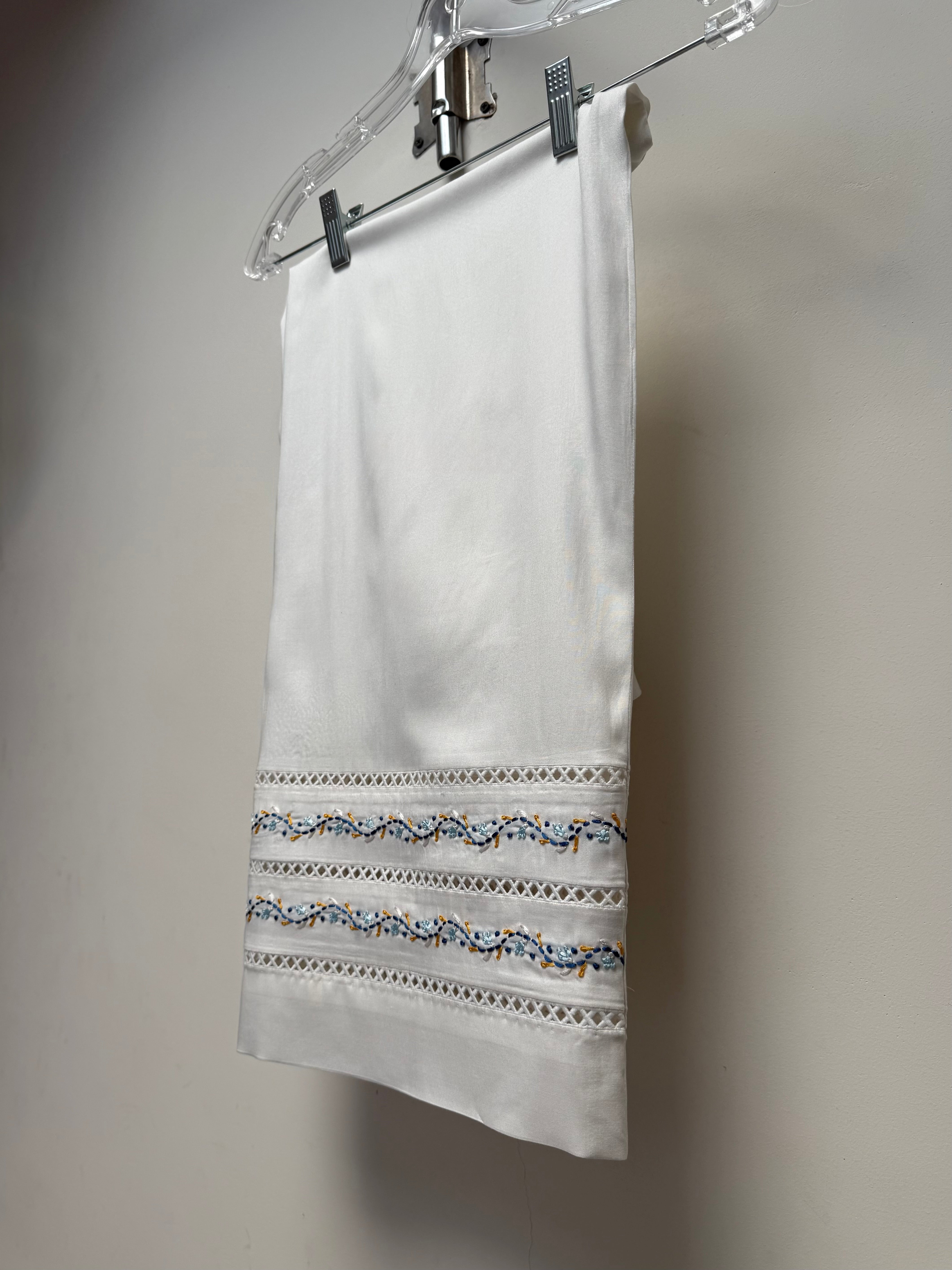 Premium linen with lacework and intricate hand embroidery for elevated dinner wear.